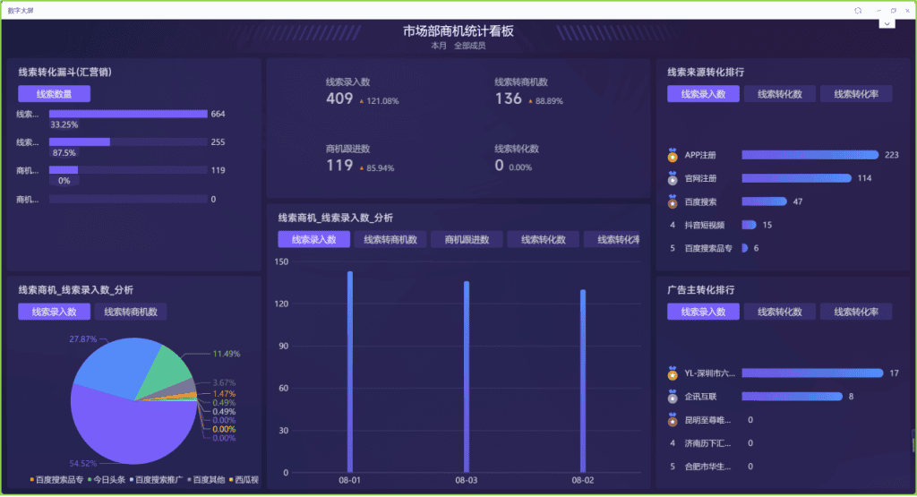 对于决策者可以一目了然对整个业务状态进行把控,进而核算出对应的ROI制定合理的KPI。