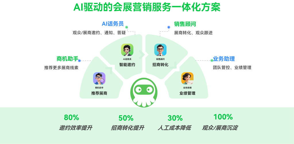 当前会展行业普遍面临观众邀约难、招商转化差、管理决策滞后三大痛点:人工邀约效率低下、无效沟通占比高,展商资源分散易流失,数据不透明导致经营决策滞后,传统模式成本高、效率低,严重制约展会规模与盈利增长。数字化转型,已成为行业破局的核心方向。