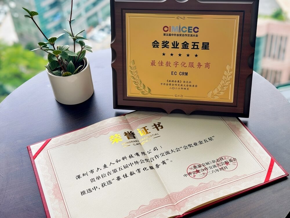 2026 年 4 月 15 -16 日,第五届中外会奖合作交流大会在北京圆满举办。大会以 “精准对接、创新协同、价值提升” 为主题,汇聚国内外会奖、会展、文旅、数字技术等领域精英,共探行业高质量发展之路。EC受邀亮相本次盛会,凭借领先的数字化服务实力,荣获会奖业金五星・最佳数字化服务商奖项,成为现场备受关注的数字化服务商。
