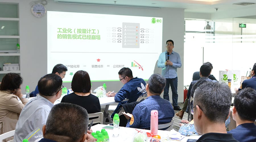 随着社交化浪潮对产品生产理念、传播方式以及企业与消费者之间的相互关系等一系列传统商业模式法则的冲击,推动着企业销售场景变革与新产业、新态势的出现。面对趋势的变化与销售场景变革,六度人和(EC)创始人兼CEO张星亮先生与前来参访的50多位企业家们分享了他的思考。