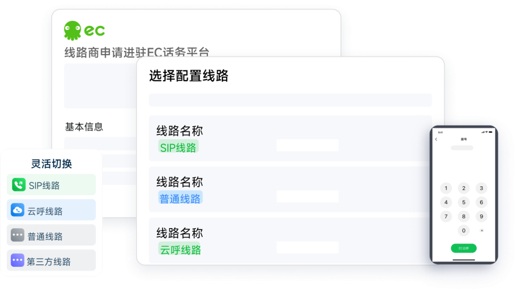 支持多种线路接入,灵活切换,构建专属外呼方案