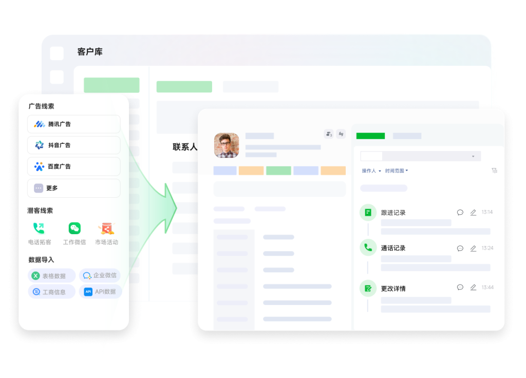 打通电话、微信、短信等多种沟通渠道,将客户资源沉淀为企业数字资产