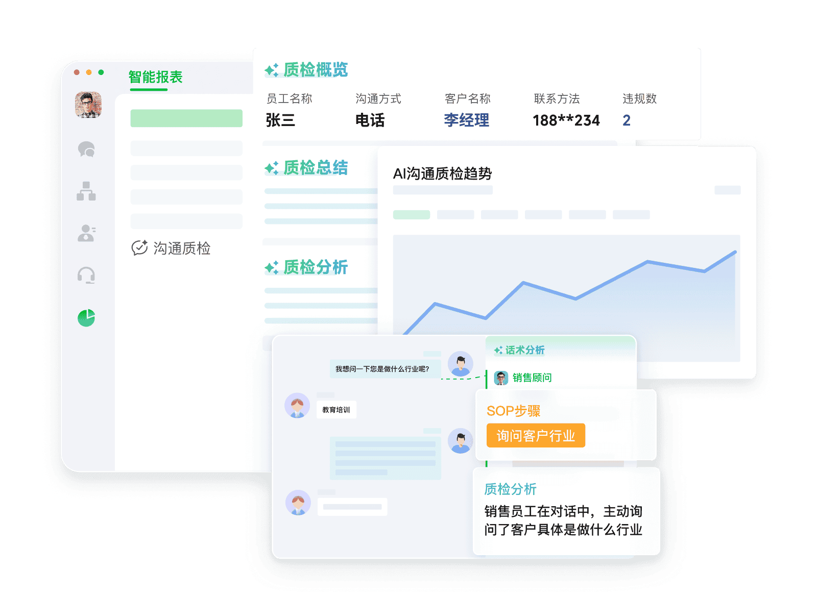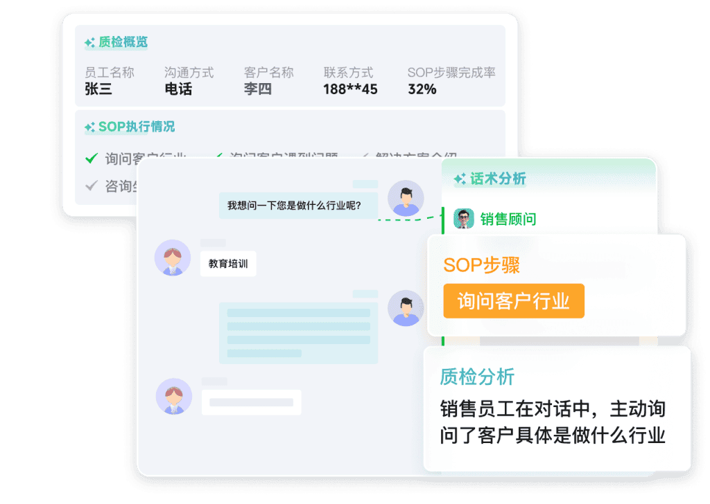 前沿 AI技术,多维度对销售沟通表现进行全面质检,并提供详细到字句的质检报告