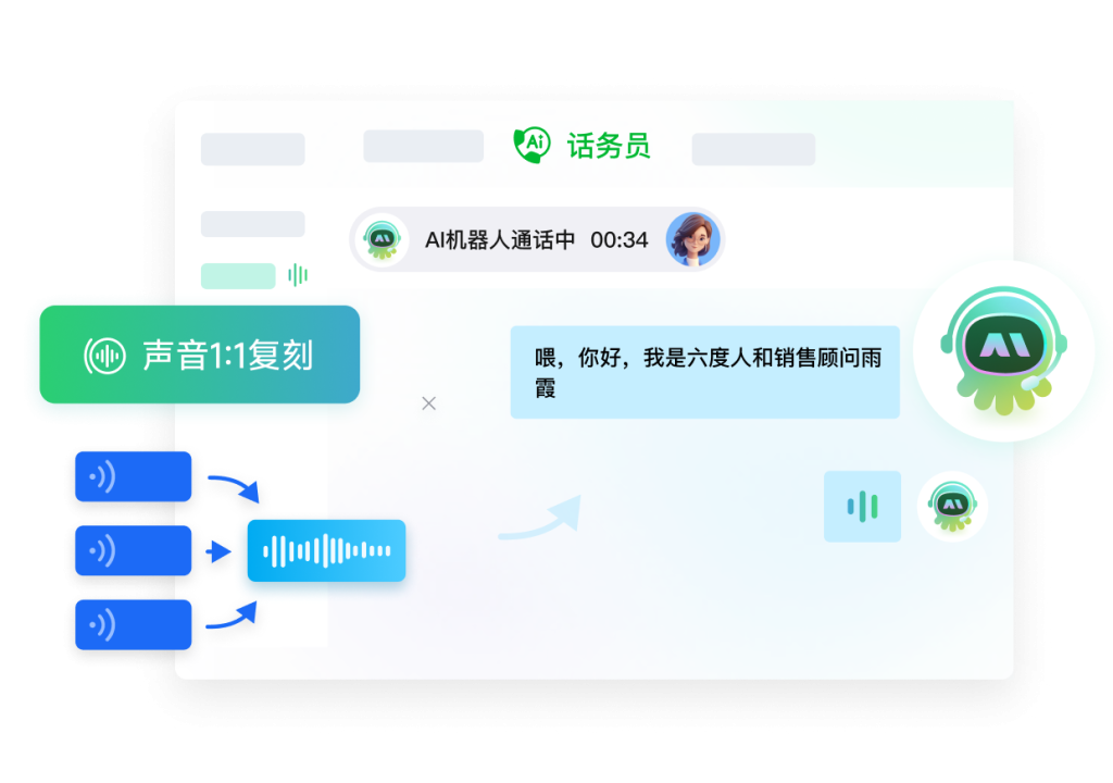 支持1:1复刻销售真实音色,模拟真人语气、情感与语调,对话自然生动