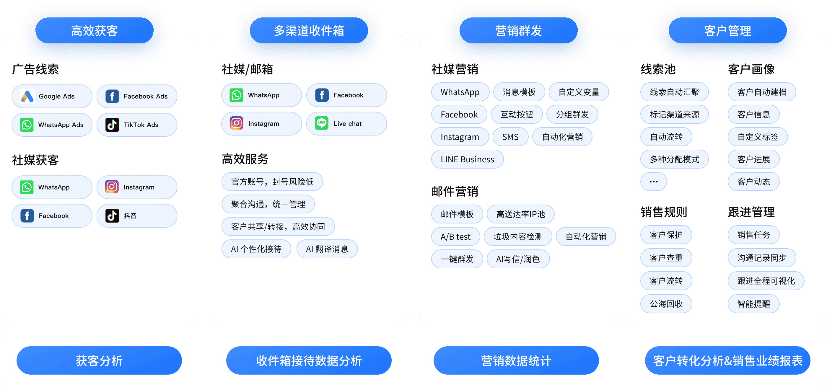 品牌要出海,却面临众多难题?EC出海版,为品牌出海而生,一键解决获客、沟通、转化、管理问题。汇聚国内外全渠道广告线索,支持多语言沟通,通过邮件/社媒多渠道高效触达,配合智能CRM精细化管理,实现获客到转化的全流程提效,助推企业破解出海困境,加速业绩增长。